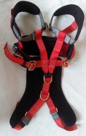 二类全身吊带。全身全可调,适合不同尺寸人群。前后承重挂点,拉力:25KN。胸前备有安全卡部锁紧系统。备有黑色布包装袋,便于携带。重量:850克。技术性能符合GA 494-2004《消防用防坠落装备》的要求。