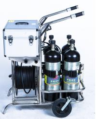 • 组成部件:长管推车、长管绕盘装置、气瓶、气源分配器、减压器、压力显示装置、长管、面罩、供气阀、便携式腰带。