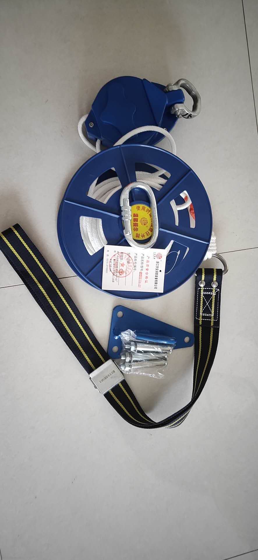 公司生产的绳索内芯为航空用绳的缓降器,抗拉强度高,不锈耐腐蚀。