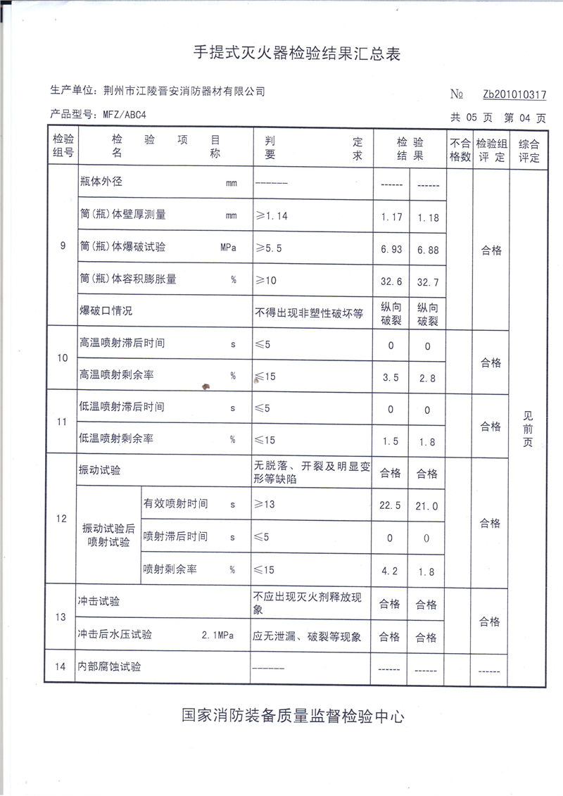 干粉4kg检验报告(型式试验)