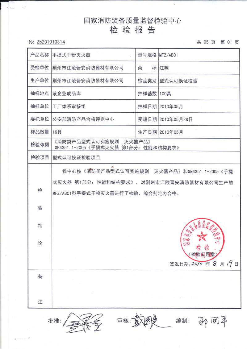 干粉1kg检验报告(型式试验)